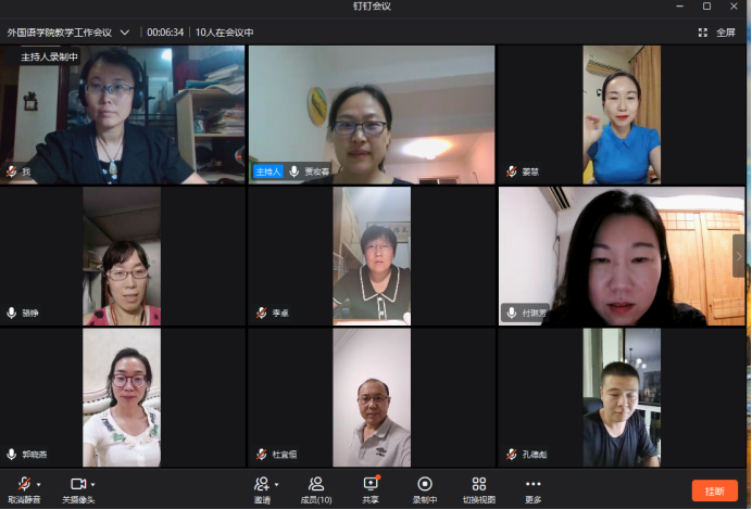 为贯彻落实全省教育系统疫情防控暨开学准备工作视频会议精神、学校《关于疫情防控常态化情况下做好2021年秋季学期期初教学工作安排的通知》(院教〔2021〕54号)和《平顶山学院线上教学质量监控与保障实施办法》等文件要求,进一步加强线上教学质量监控与督导工作,7月13日晚,beplay官方体育组织教研室主任召开了钉钉视频会议,专题部署了疫情防控期间的线上教学质量监控与督导工作。beplay官方体育副院长贾宏春、付琳芳,英语专业教研室主任都婧婧、商务英语教研室主任骆铮、翻译教研室主任宋延辉、西班牙语教研室主任孔德彪、大学英语教研室主任姜慧、李卓、中外合作办学教研室郭晓燕参加了会议。