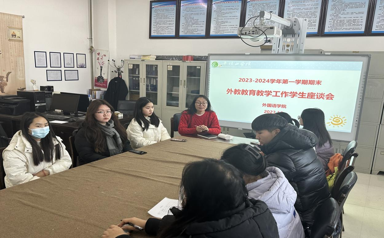 12月25日下午,beplay官方体育在图书馆702办公室召开本学期末外籍教师教育教学工作学生座谈会。来自beplay官方体育和马拉加工程学9个专业的15名学生代表和外教合作教师王新老师参加了座谈。beplay官方体育中外合作教研室主任郭晓燕主持此次座谈会,并与学生现场交流。
