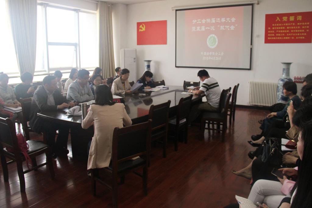 4月27日下午,beplay官方体育分工会换届选举大会暨五届一次教代会暨工代会(简称“双代会”)在图书馆L607会议室顺利召开。我院34名教职工代表参加了此次大会,会议由分工会主席单满菊同志主持。